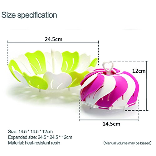 1. Extendable Steamer basket,which can expand from 13.5cm to 25cm,large capacity when fully open, but folds neatly away for storage