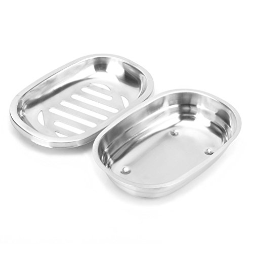 REPEAK Oval Stainless Steel Soap Dish Soap Holder for Bathroom and Shower Double Layer Draining Soap Box