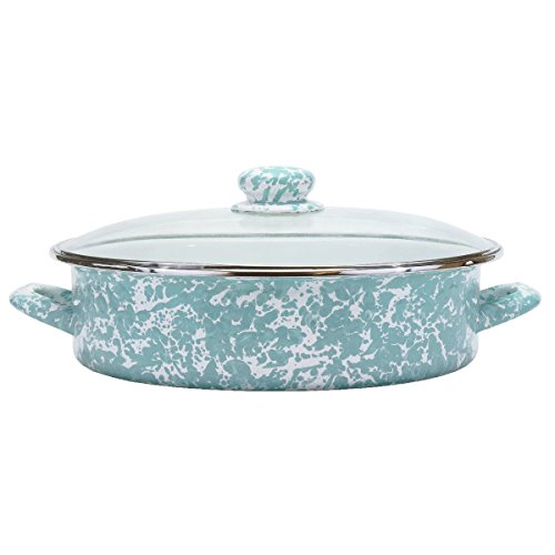 -. Feature : 8 Quart Saute Pan - Measures 13.5 Inch Diameter - Stands 3.25 Inches Tall / Beautiful Sea Glass Teal Swirl Pattern on Porcelain Enamel Finish / Part of the Golden Rabbit Sea Glass Teal Swirl Collection / Stainless Steel Rims for Extra Durability / Oven and Stovetop Safe - Works with Induction - Dishwasher Safe - Not Intended for Microwave