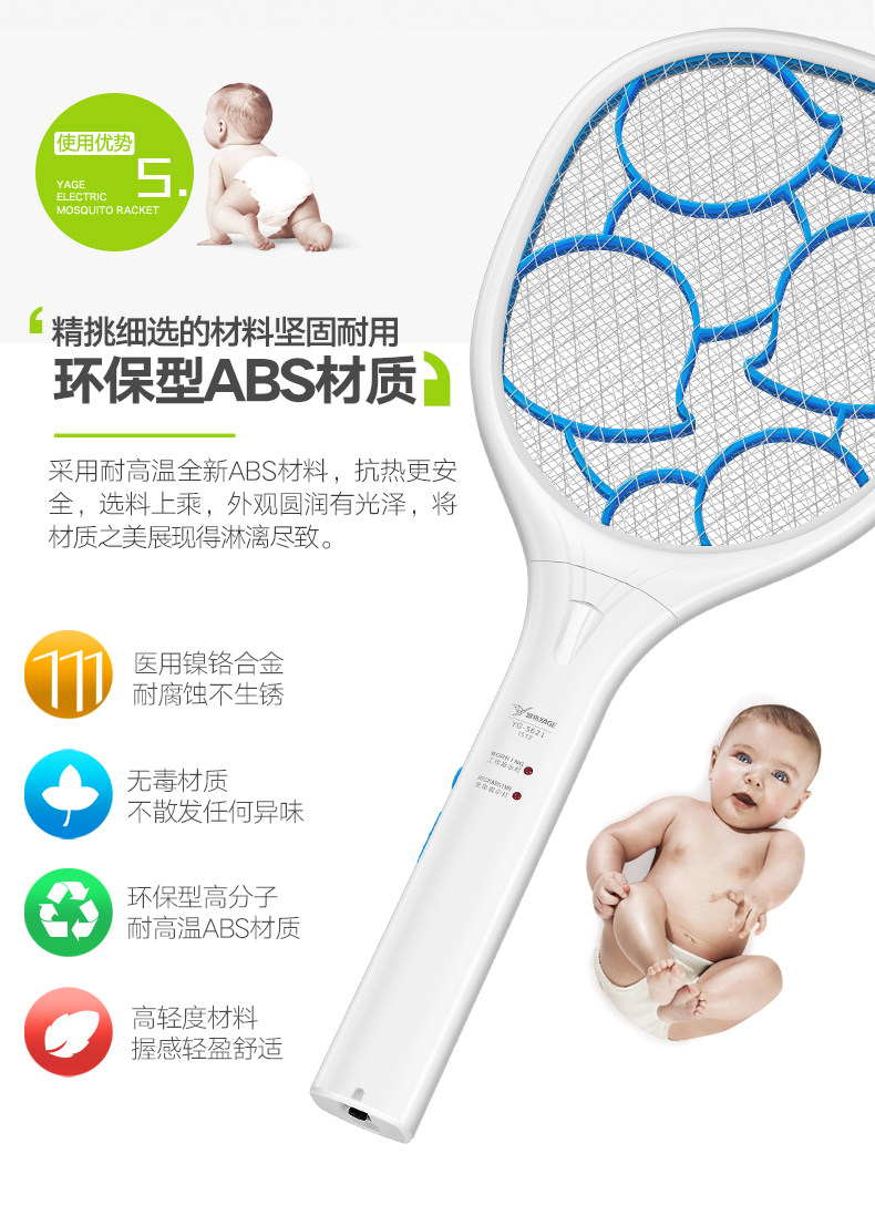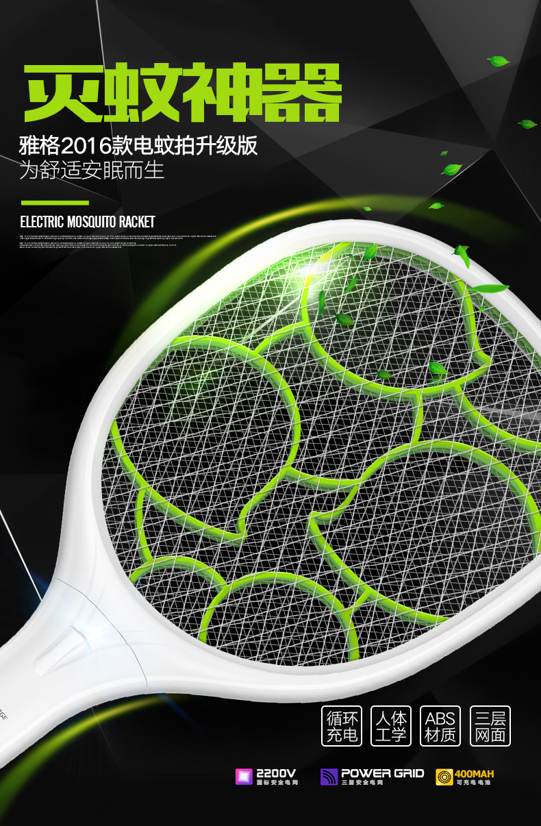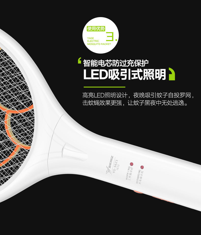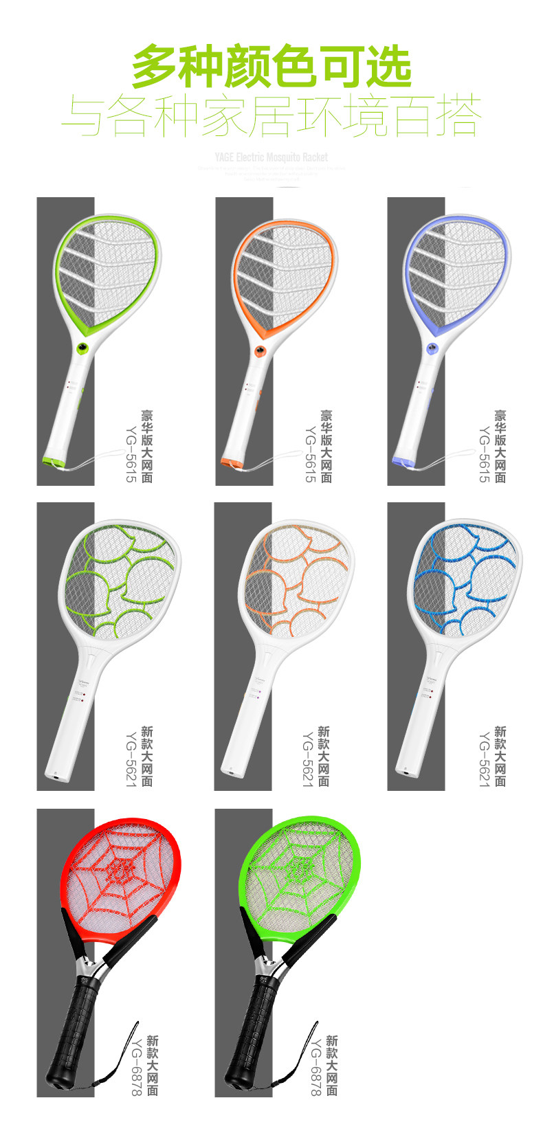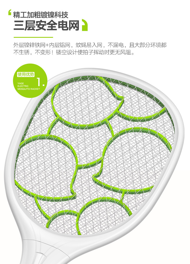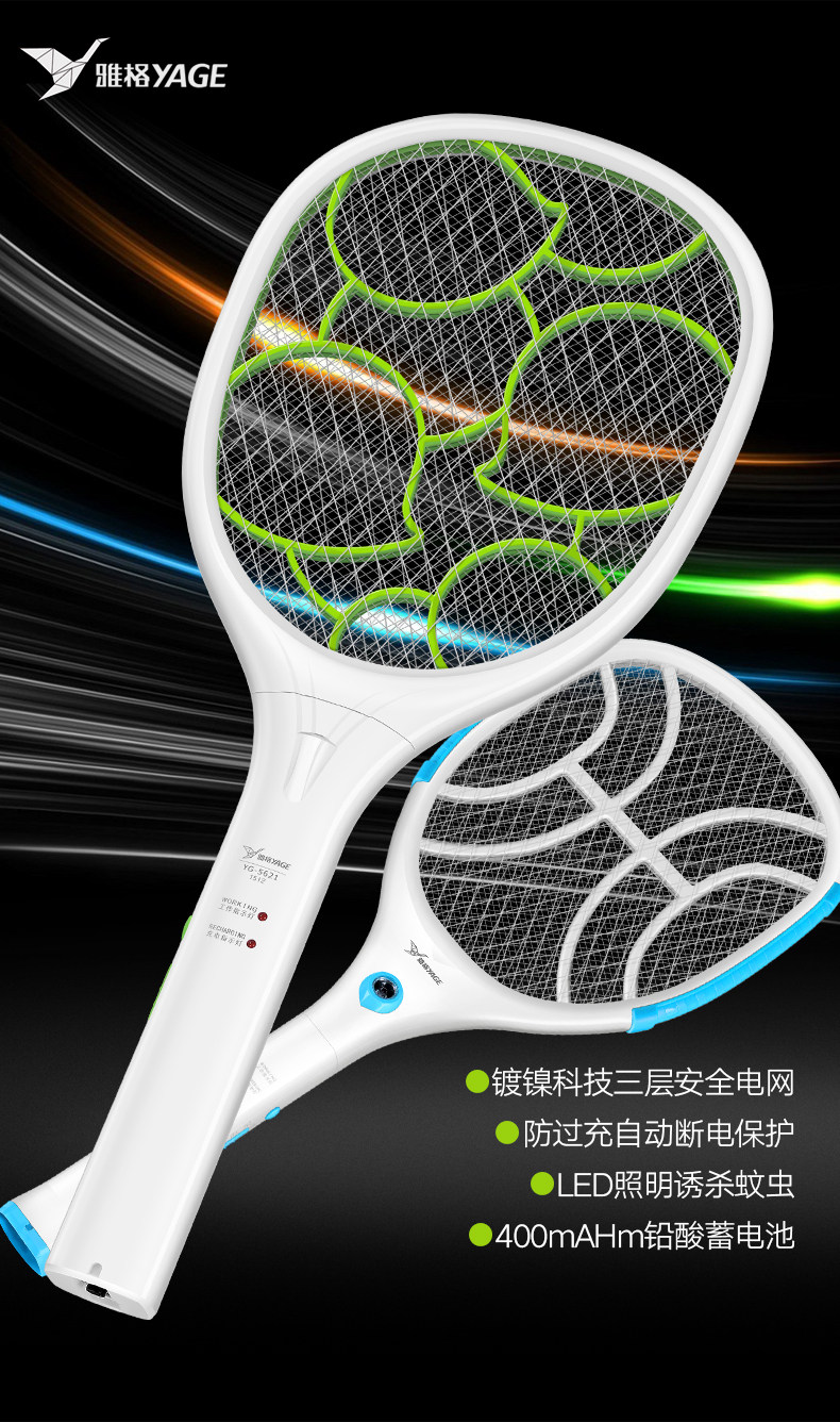 ?雅格电蚊拍充电式大号网面led灯多功能电灭蚊器蚊子拍电苍蝇拍