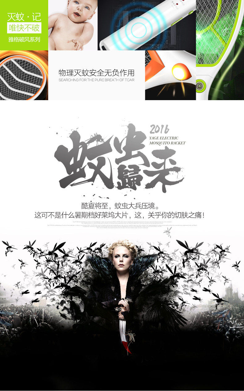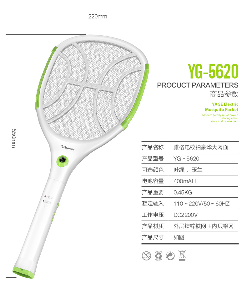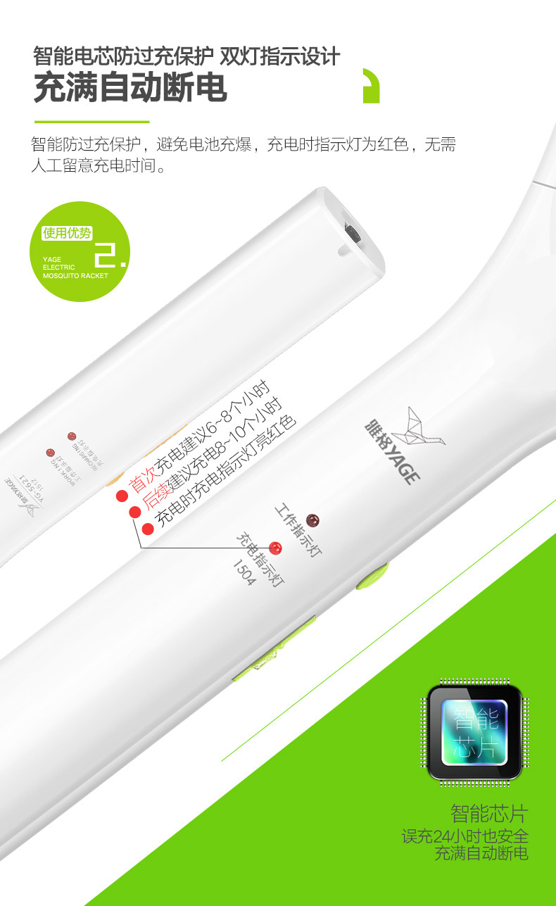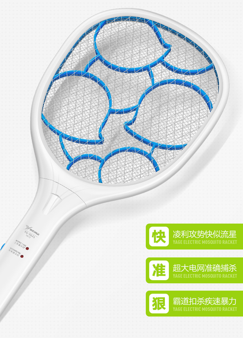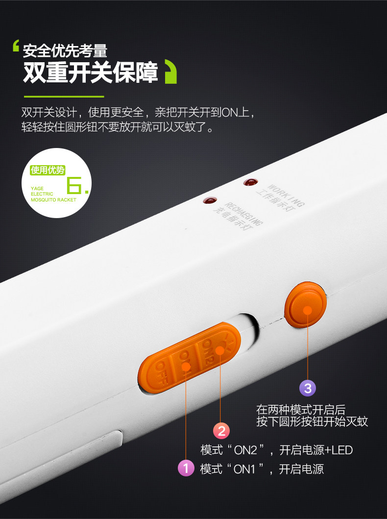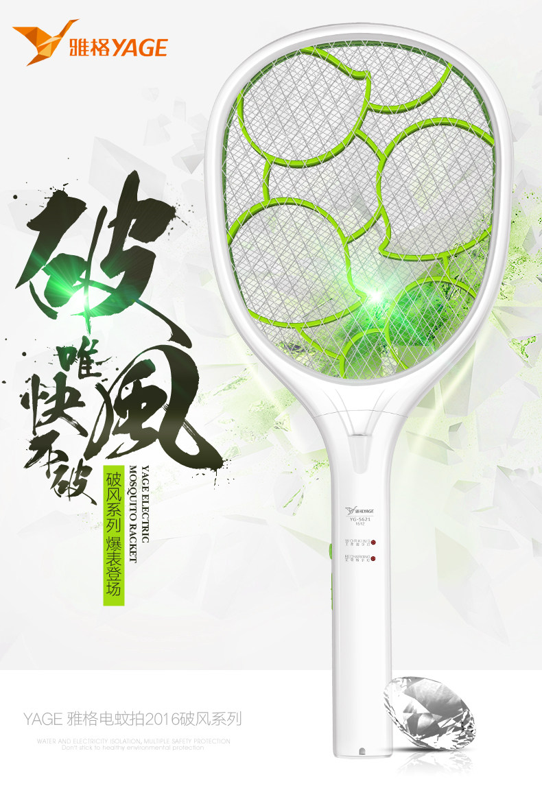 ?雅格电蚊拍充电式大号网面led灯多功能电灭蚊器蚊子拍电苍蝇拍