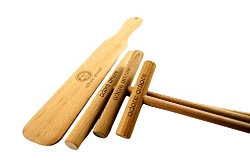 The art of creating beautiful, tear-free and elegant crepes is now possible with this 4-piece set of crepe spreaders and spatula. Indulge yourself in a delicious serving any day of the week, any time of the day. Carefully constructed from 100% natural beechwood, the spreaders are conveniently sized to fit most, if not all, household pans or crepe-makers.