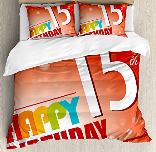 (Ambesonne)/Bedding Bath/Bedding/DIRECT FROM USA/15th Birthday Decorations Duvet Cover Set by Ambesonne, Happy Fifteenth Birthday Concept Greeti...