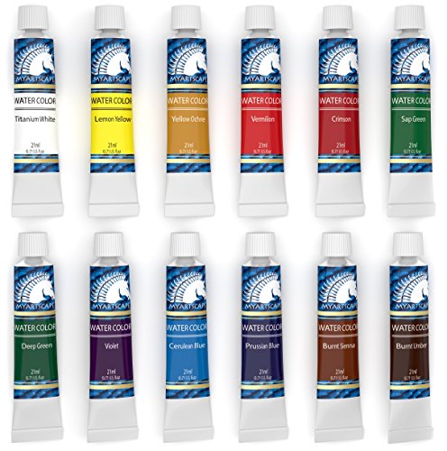 Watercolor Paint Set - Artist Quality Paints - 12 x 21ml Vibrant Colors - Rich Pigments - Professional Supplies by MyArtscape (Set of 12 x 21ml)