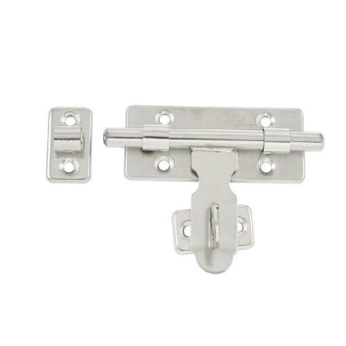 -. Feature : Product Name : Barrel Bolt;Material : Stainless Steel / Overall Size(Approx) : 100 x 75 x 20mm/ 4" x 3" x 0.8" (L*W*T);Screw Hole Diameter : 4mm/ 0.16" / Color : Silver Tone / Net Weight : 91g / Package Content : 1 x Barrel Bolt