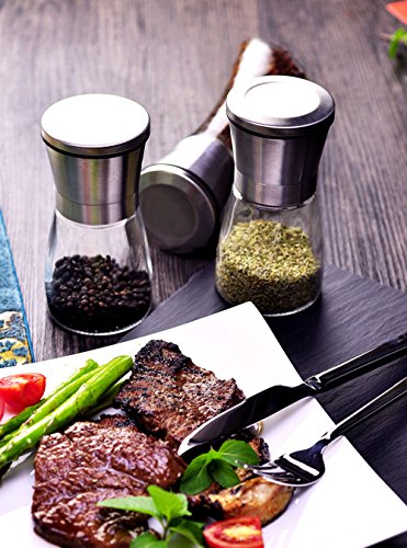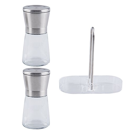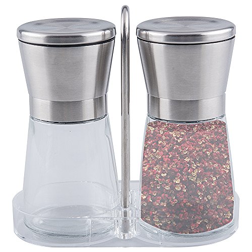 Tebery Premium Stainless Steel Pepper Grinder with Matching Stand, 2 Pack