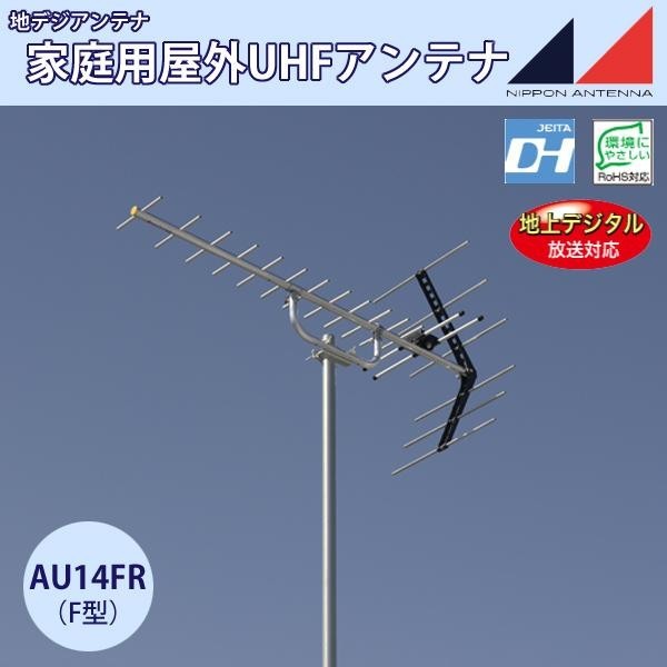 | 仕様 | 地上デジタル放送対応 デジタルハイビジョン受信マーク登録品 RoHS対応 受信チャンネル:UHF13~52ch 素子数:14 動作利得:8.0~12.0dB インピーダンス:75Ω(F型) 電圧定在波比:2.5以下 電力半値幅:33~55度以下 前後比:16~25dB 風圧荷重:88(9.0)kgf 適合マスト径:φ22~48.6mm |