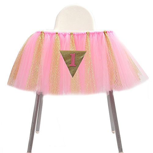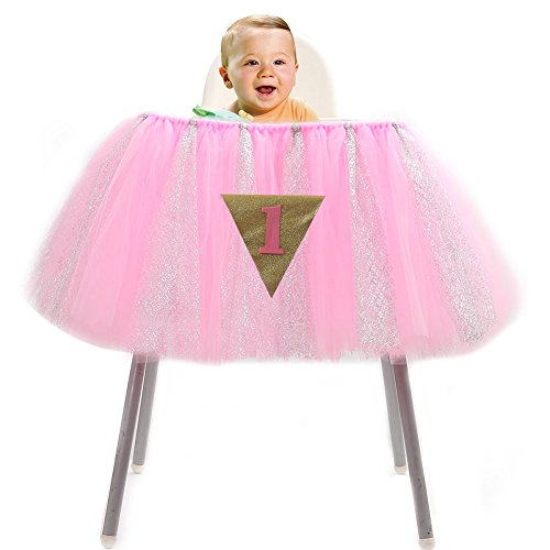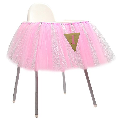 - ★ HANDMADE TULLE WITH GLITTER: The glitter tulle is very safe for your baby and the glitter tulle would not be shedding.This beautiful baby shower decorations will make your high chair look beautiful.Dress up your party with this unique pink high chair skirt,Amazing your birthday and baby shower.This tulle high chair skirt shows your tasty and elegant.