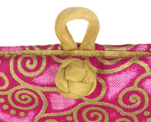 Binding : Apparel Product Description A nice and light way to store and secure your eyeglasses or sunglasses and other personal items in your purse. This eyeglass pouch is made from 100% cotton fabric in fuchsia pink and gold swirls design and is cushioned 3 mm. sponge and lined with coordinated gold raw Thai silk fabric. Accented with a beautiful Chinese knot loop closure. Matching drawstring jewelry pouch and gift bag are also available in this fabric. 0
