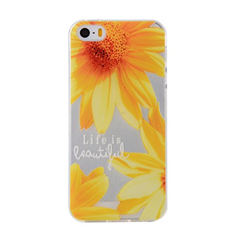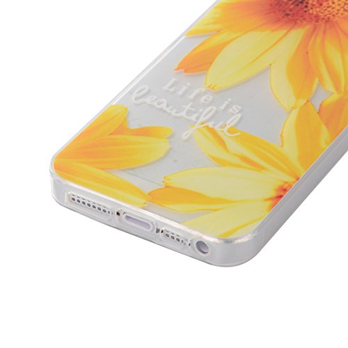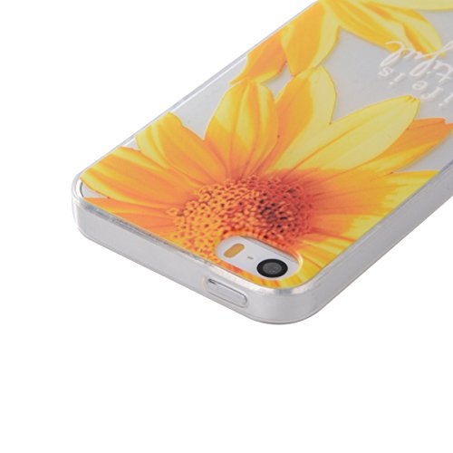 iPhone SE Tpu Case,IKASEFU Pretty Sunflower Design Slim Fit Soft Gel Clear Transparent Bumper Tpu Rubber Case Cover for iPhone SE/5S/5-Sunflower