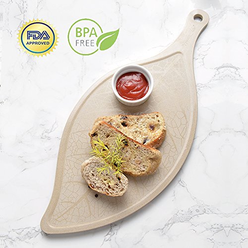Antibacterial Leaf-Shaped Cutting Board with Handle and Groove,Charcuterie Platter,Durable Serving Tray for Meat,Cheese,Bread&Fruit
