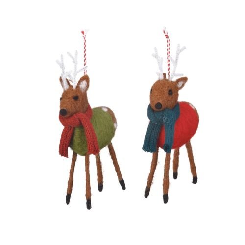 Demdaco Woolie Deer Ornaments - 2 Assorted