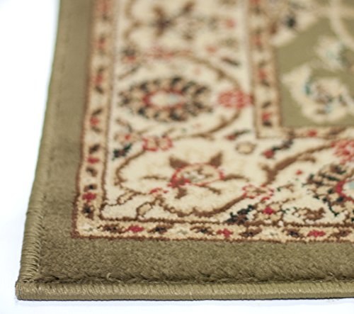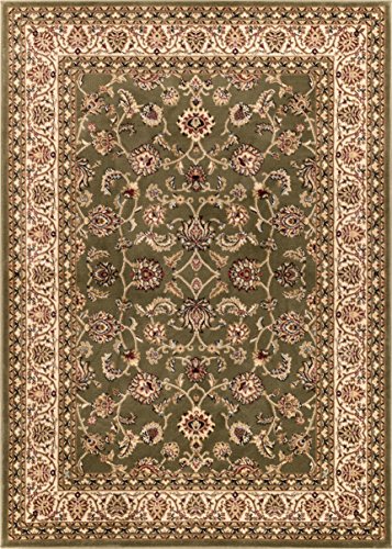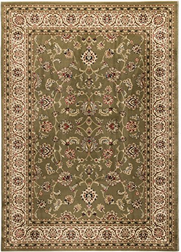 Well Woven Barclay Sarouk Green Traditional Area Rug 5'3" X 7'3" brings together an array of patterns drawn from a carefully selected palette of Modern, European, and Persian Styles. Warm red, green, and blue jewel tones are accented by neutral tones of ivory and beige. The heat set polypropylene fiber gives a 0.4" pile that is soft, stain resistant, and doesn’t shed or fade over time. The 100% jute backing is safe for wood floors and all four sides of the rug are serged for improved durability. A wide range of shapes, sizes, and designs means this collection has something for rooms of every size and styleFeature