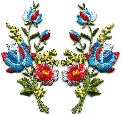 "Cotton Candy" blue red roses pair flowers floral bouquet boho embroidered appliques iron-ons patches new