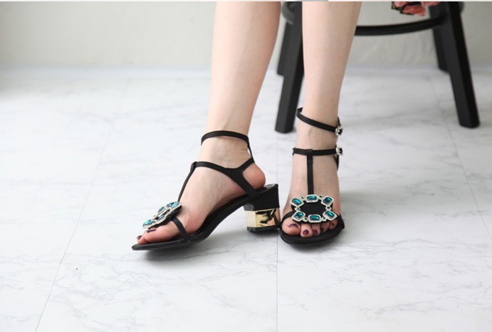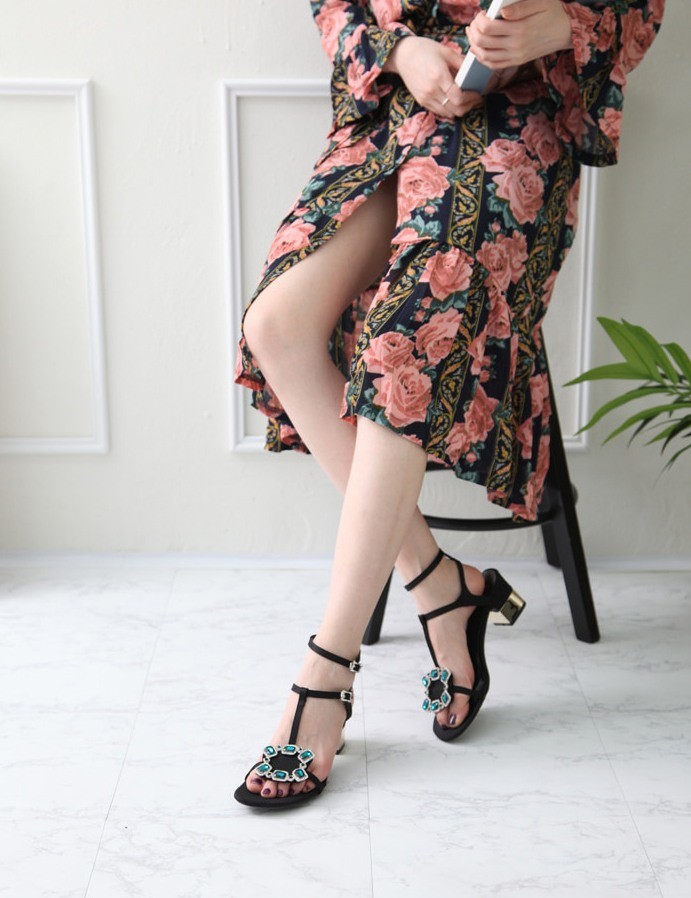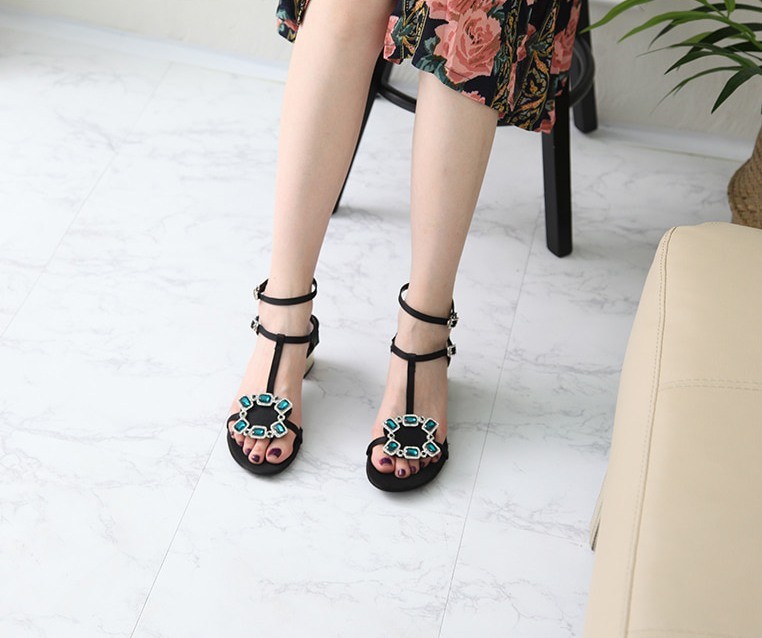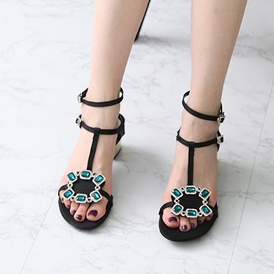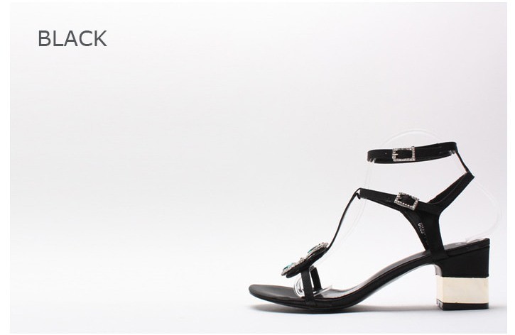 商品名:サンダル レディース 太ヒール チャンキーヒール ビジュー 2018 夏 ファッション 靴 婦人靴
