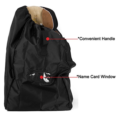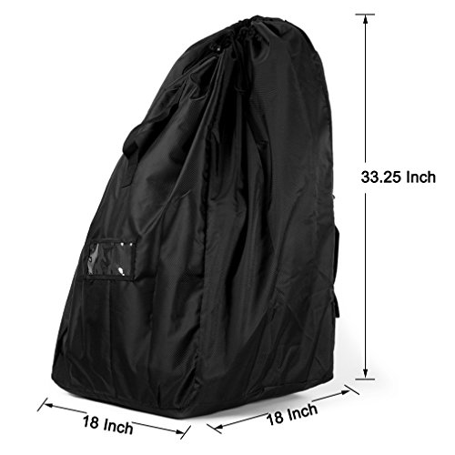 ✔ Baby seat travel bag is made of durable strength polyester fabric that will not tear, waterproof. Convenient holding bag with a Drawstring Closure and adjustable lock for easy opening and closing.Product Dimensions are: 18*18*34inches. Fits most kinds of car seats.