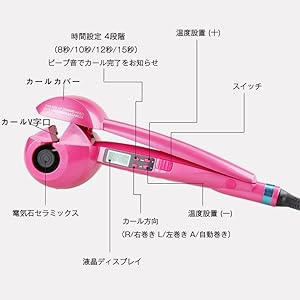 ※電子音が鳴る前にコテを開いた場合は再度コテを閉じると同じ方向にカールします.