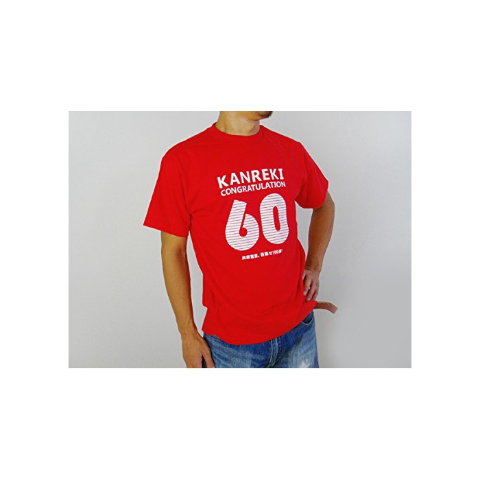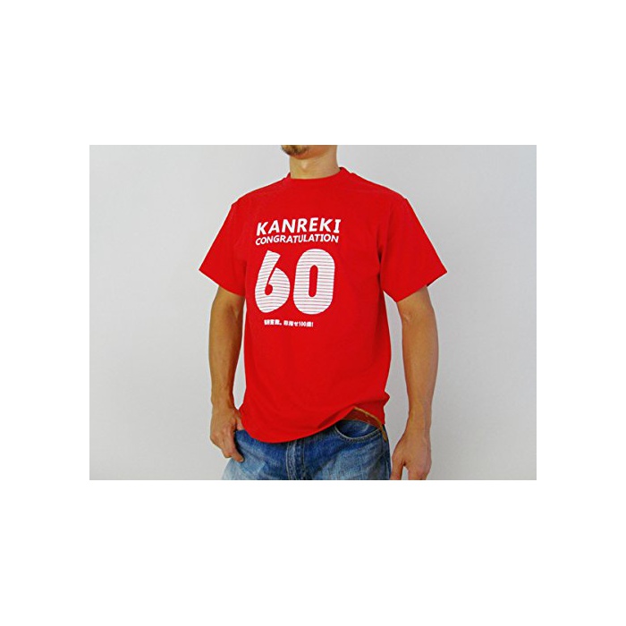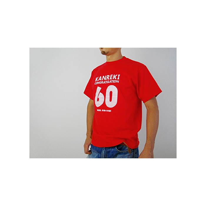 행옷가게 씨 환갑 축하해 기프트T셔츠(반소매) KANREKI MS05 L 레드