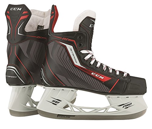 Studio : CCM Publisher : CCM Product Description The next saga in CCMs RBZ skate line is here with an improved close to the foot fit making it the best RBZ skate series yet. The Synthetic embossed outer shell of the JetSpeed 250 helps provide a forgiving platform for recreational and new skaters. The upper package is finished with a Heavy duty microfiber liner a comfortable, soft touch liner that is both lightweight and durable. Additionally, a one-piece, felt tongue helps provides lightweight comfort on the ice. The boot sits atop a Low profile injected outsole that is lightweight and when mounted to CCMs SpeedBlade PRO holder with non-replaceable stainless steel runner, the JetSpeed 250 skate is Fit to Fly! 0