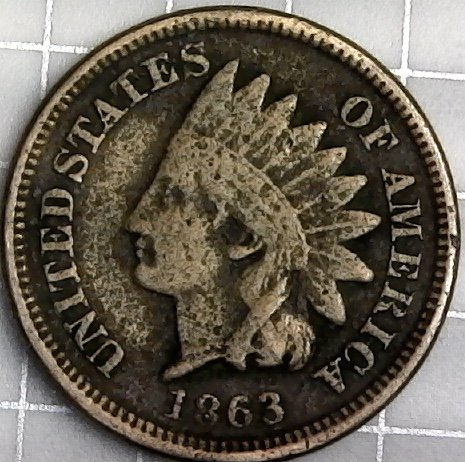 1863 P Indian Head Penny Cent Very Good Condition Very Good Details
