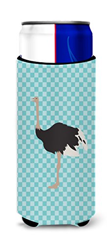 Caroline's Treasures BB8098MUK Common Ostrich Blue Check Decorative Hugger, Slim Can, Multicolor