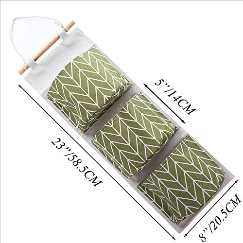 Over the Door Closet Organizer, 2 Packs Wall Hanging Storage Bags with 3 Pockets for Bedroom & Bathroom (Green)