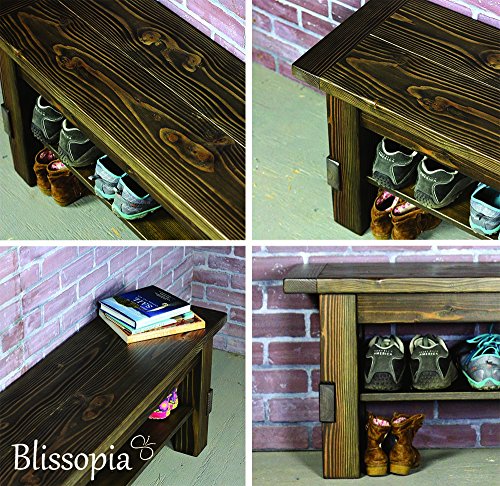 -. Title : Solid Wood Storage Bench Entryway Seat and Shoe Shelf, Shoe Rack Storage Organizer and Hallway Bench, 100% Rustic Seat Bench with Storage Shelf