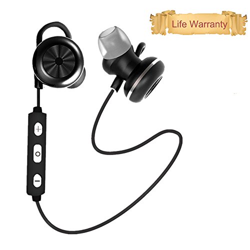 -. Feature : Magnet Attraction- Lightweight intelligent magnet at earplugs end to make whole Wireless Headphones as a circle, hang like a necklace around your neck.You can wear around your neck during workout and sports to avoid losing it. / Sweatproof Design-Advanced waterproofing technology for nano - coating protects these sports headphones from liquids such as water, sweat, milk, coffee, wine. If the headset shower or wet,Please turn it off power.it will work normal after drying. / High Quality Sound-Super noise reduction technology provides lossless stereo sound.Snug and secure, make sure the headset stay put and your music stays smooth when you are running, cycling, exercising and doing other activities. / Long Standby Time--built-in 100mAh Lithium Polymer Battery. Fully Recharge will take about 2 hours or standby 120 hours.Bluetooth 4.1 technology can pair 2 devices simultaneously. / Warranty-All products are backed with lifetime Warranty. Shop with confidence, and protect your technology today