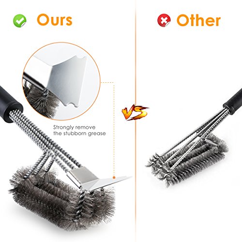 - 【WITH SCRAPER STRONG CLEAN BRUSH】Upgrade design, the grill scraper can clean stubborn stains deeply and efficiently. Perfect heavy duty bbq brush.