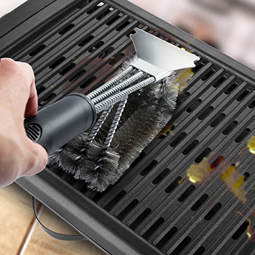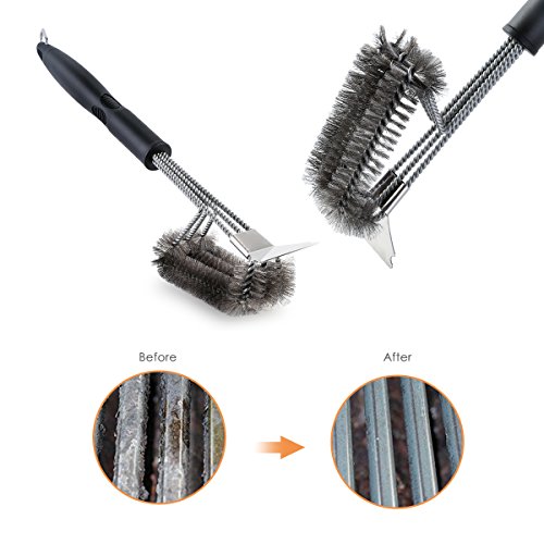 - 【5X FASTER CLEANING】The grill brush has three brushes in one, each with its own equivalent stroke, equivalent to 3 traditional brush. So clean 5x faster than ordinary bbq brush! Be prepared to clean every bit of residue with its innovative 360 degree rotator.