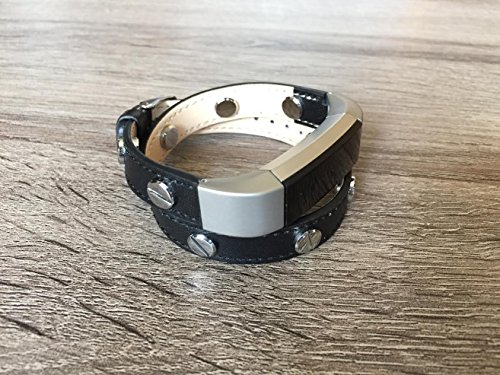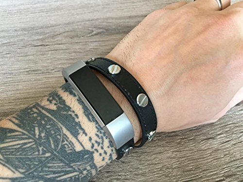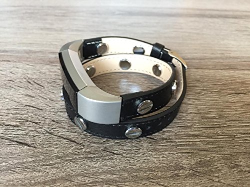 -. Title : Double Wrapped Classic Black Leather Band For Fitbit Alta And Alta HR Handmade Eco Friendly Bracelet With Multiple Silver Rivets By BSI