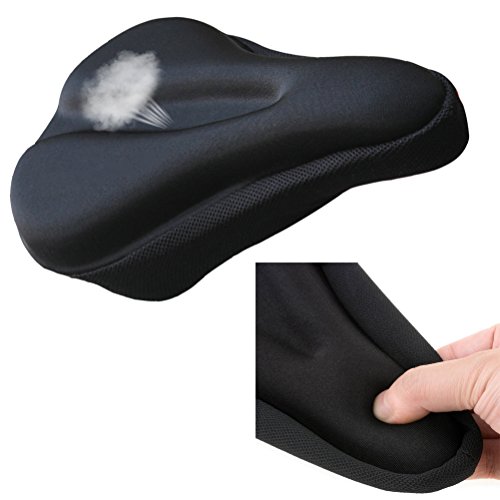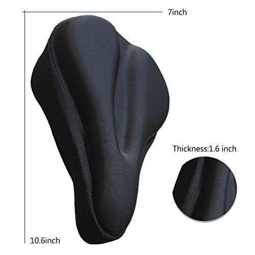 MEASUREMENT: 10.6×7 inches (27cm × 18cm) Thickness:0.4-1.6 inches (1-4cm) Please measure your bike seat before purchasing Manual measurement, please allow small errors. Fits for most of narrow bike saddle.