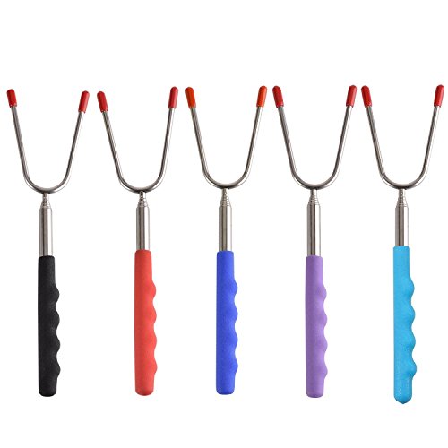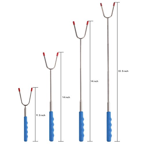- ✓Extendable of the Fork’s Length: 34 inch extra-long extendable telescoping forks and it can adjust the length according to your need and keep you and your kids at a safe distance from the fire pit. Sharp tips are protected with rubber, which makes them be perfect for children and let them a must for BBQ