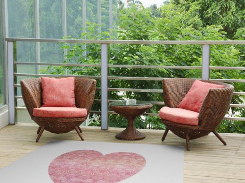 Kess InHouse Pom Graphic Design "Love" Pink White Indoor/Outdoor Floor Mat, 4-Feet by 5-Feet