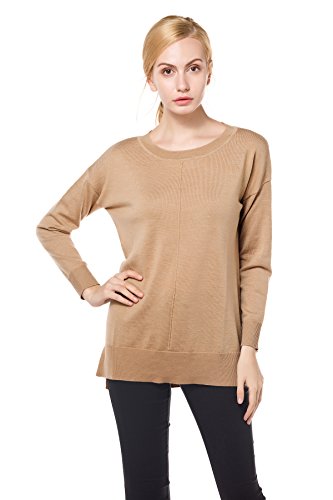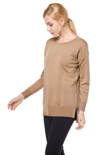 -. Title : Knitbest Women's Knitwear Long Sleeve Round Neck Knit Merino Top with Rib Trim