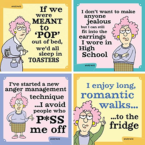 Tree-Free Greetings Hilarious Aunty Acid Magnet 4 Piece Set, 3.5 x 3.5 Inches, Sleep in Toasters Magnets (FM31259)
