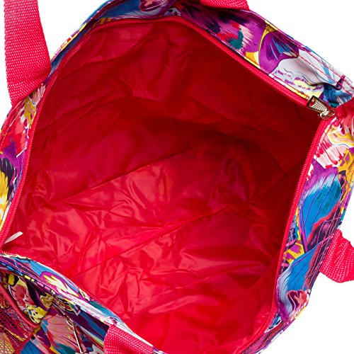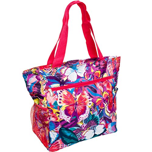Womens Beach Shopper Tote Bag (Multicolor Butterfly w/Pink Trim)