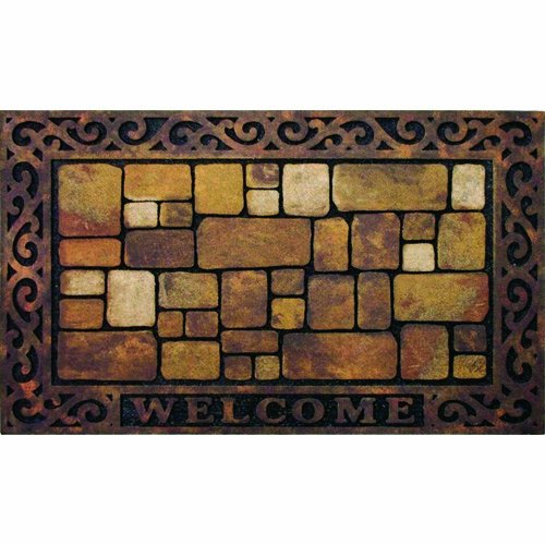 -. Feature : Aberdeen welcome mat / All original designs with built in channels provide two dimensional looks / The recycled rubber base provides long lasting durability / The flocked fibers provides scraping and trap dirt / Measures 30-inch length by 18-inch width