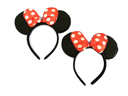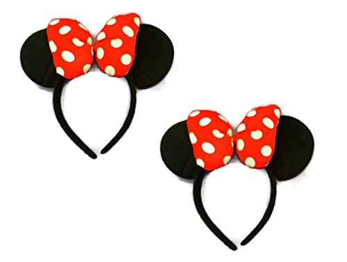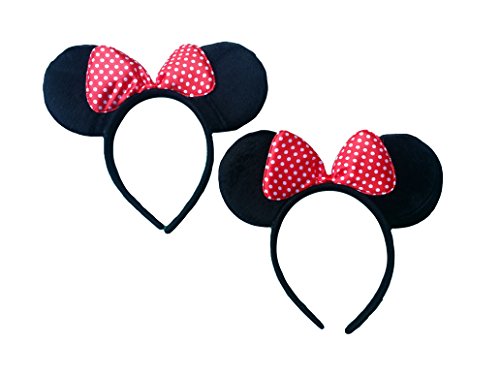 2 Pack of Black Minnie Mouse Ears with large Red Bow