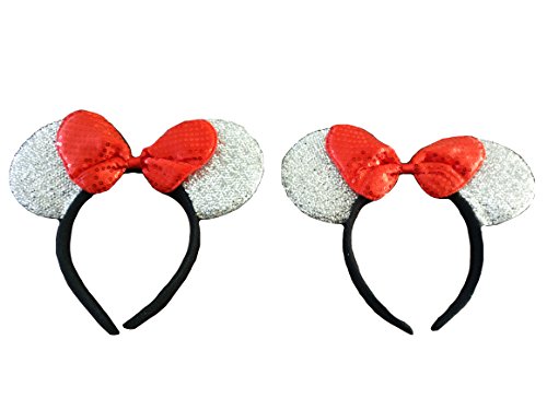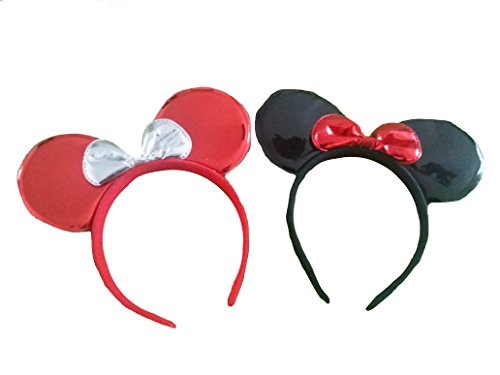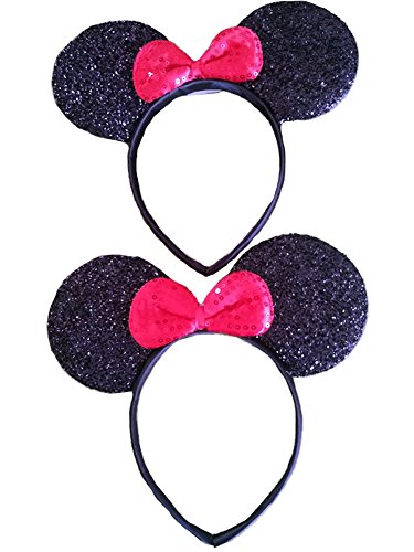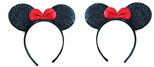 2 Pack of Sparkling Black Minnie Mouse Ears with red bow