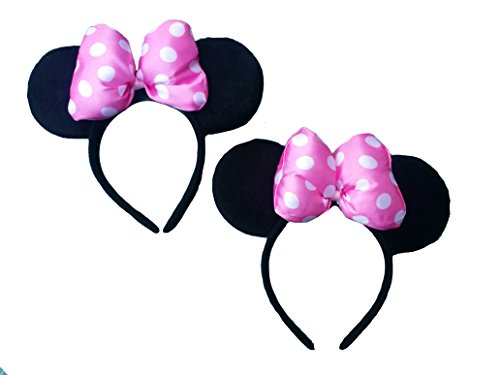 2 Pack of Black Minnie Mouse Ears with large Pink Bow