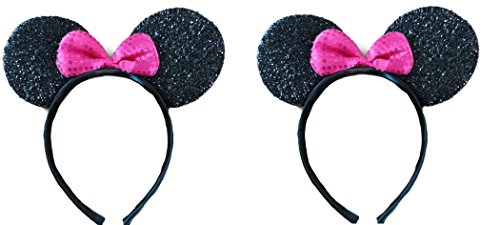 2 Pack of SparklingBlack Minnie MouseEars with pink bow