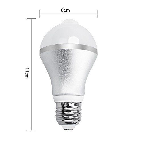 - PIR Motion Sensor Included: High quality PIR infrared sensor is installed at the tip of the bulb, so the bulb will light up automatically while it detects motion within 5m(16ft) in the dark, and automatically off after the motion ceased or disappeared about 60 seconds.