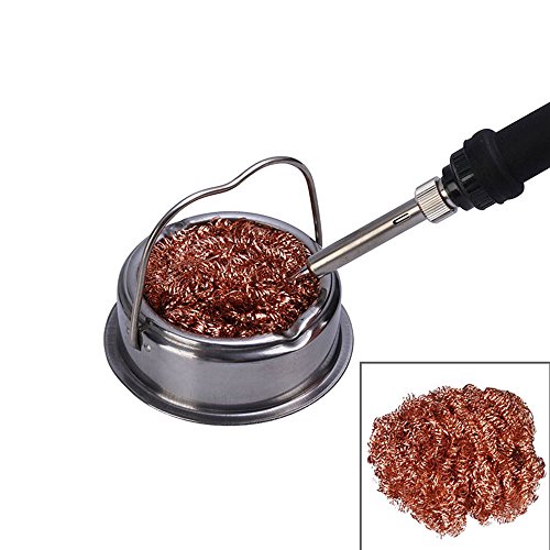 E-outstanding Solder Iron Tip Cleaner Holder, Heat Resistant Stainless Steel Case Brass Wire Cleaner Sponge Ball, no water Needed.