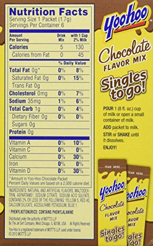 Yoo hoo Singles to go Chocolate Mix. 6 packets per box.