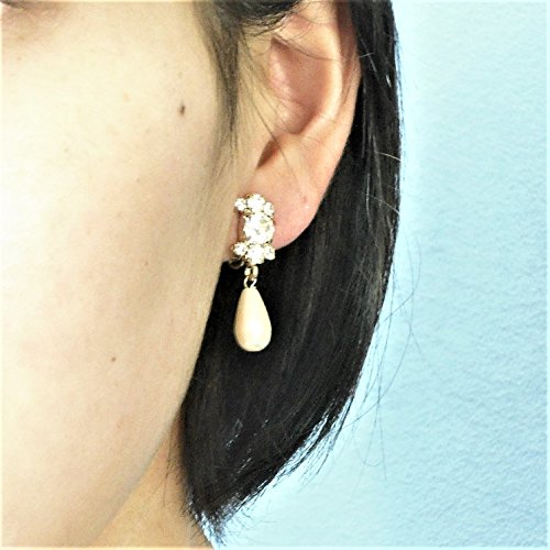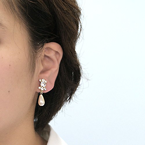 안주《―루이야린구》 디자인 라인 스톤 펄 귀걸이 골드 E6G 일본제 Made in JAPAN 결혼식 불리 브라이들 웨딩 2차 모임 사은회 발표회 핼리의 일(날) 포멀 레이디스