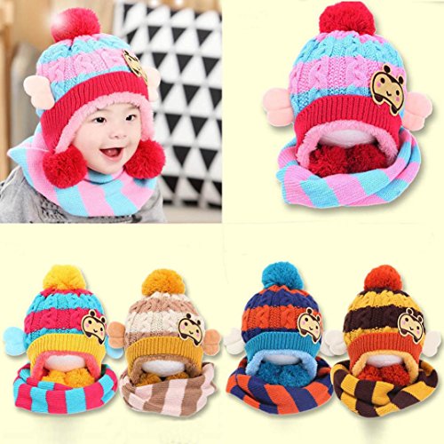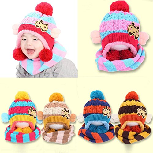 (Ecurson)/Accessories/Cold Weather Accessories/DIRECT FROM USA/Ecurson 2PC Set Baby Girls Boys Winter Hat Scarf Woolen Hood Scarves Beanie Earflap