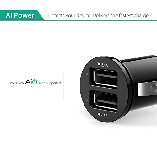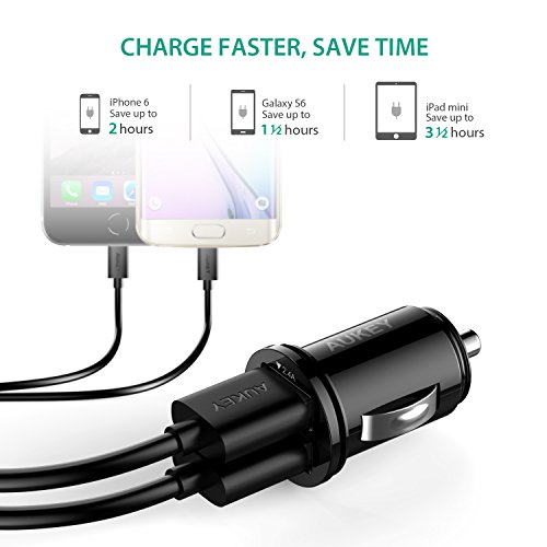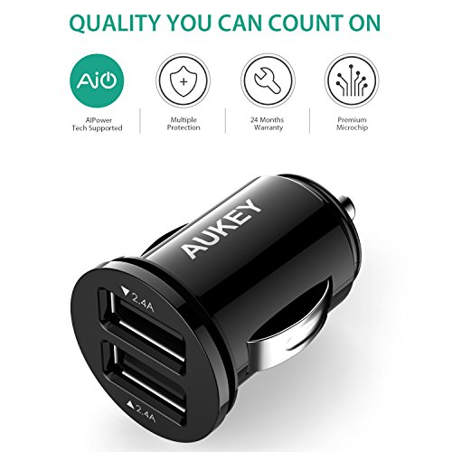 With 24W / 4.8A output, the AUKEY Dual Port USB Car Charger can simultaneously charge two tablets or two smart phones at full speed. It is easy to use and compatible with both Apple and Android devices and most other USB charging devices.