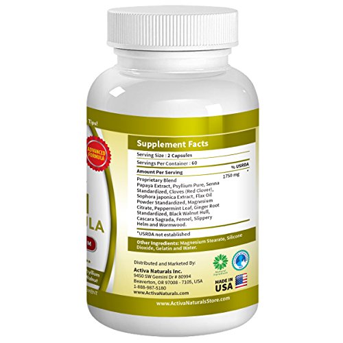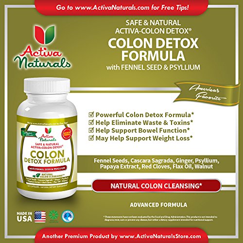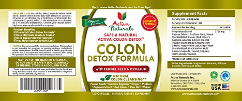 -. Binding : Health and Beauty -. Brand : Activa Naturals -. EAN : 0820103661942 -. Feature : Why Buy Our Colon Detox Supplement: A premium natural & herbal supplement blended with synergistic ingredients such as Papaya, Psyllium, Cloves, Flax Oil, Ginger, Wallnut & Fennel Seeds formulated to provide nutrients to support colon detoxification and colon health naturally / Feel the Activa Naturals Difference: Read the product reviews to see how customers are benefitting by taking our Colon Detox Supplement to manage their colon cleansing naturally / Key Product Benefits: You provide necessary nutritional support to help maintain health of Colon through targeted natural & herbal vitamins, minerals and nutrients / Key Product Features: No chemicals, no fillers, no additives, manufactured in the USA, more value for money pricing with 100% peace of mind for the ingredients' purity / Outstanding Customer Support: Buy any of our products confidently as our commitment is to work with you until we find the right solution. You come first to us! -. IsAdultProduct : 0 -. Label : Activa Naturals Inc. -. LegalDisclaimer : *These statements have not been evaluated by the Food and Drug Administration. These products are not intended to diagnose, treat, cure or prevent any disease. -. Manufacturer : Activa Naturals Inc. -. MPN : Safer Colon Cleansing for Weight Loss -. NumberOfItems : 1 -. PackageQuantity : 1 -. PartNumber : Safer Colon Cleansing for Weight Loss -. ProductGroup : Health and Beauty -. ProductTypeName : HEALTH_PERSONAL_CARE -. PublicationDate : 2015-07-23 -. Publisher : Activa Naturals Inc. -. ReleaseDate : 2015-07-20 -. Studio : Activa Naturals Inc. -. Title : Activa Naturals Colon Detox Supplement with Papaya, Psyllium, Cloves, Flax Oil, Ginger, Wallnut & Fennel Seeds - 120 Caps -. UPC : 820103661942
