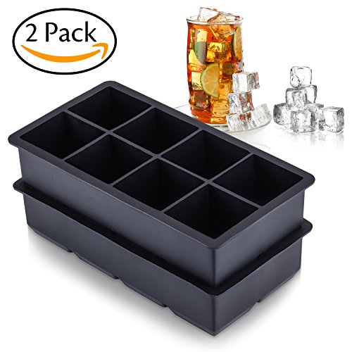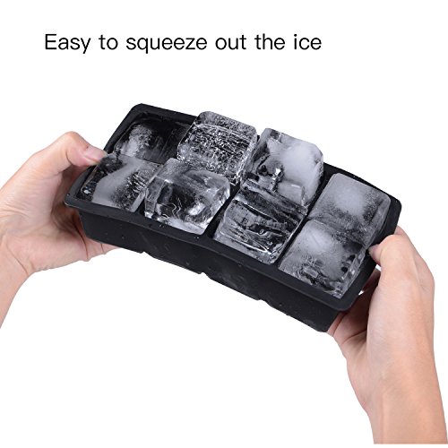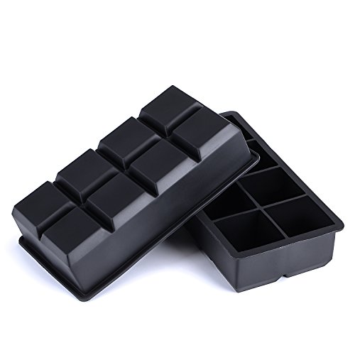 Lennov 2PCS Ice Cube Tray 2-Inch Silicone Flexible 8 Cavity Ice Maker for Whiskey and Cocktails (Black)